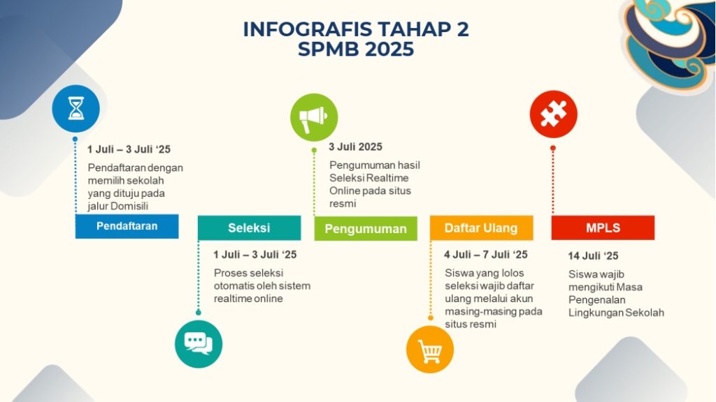 6. Pengumuman hasil seleksi pendaftatan tahap 2. Dilaksanakan pada tanggal 3 Juli 2025 di web SPMB
